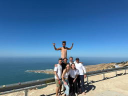 “Het enige wat ik hoefde te doen was mijn vlucht boeken, verder was alles geregeld!” vertelt Yveline (30 jaar), huisarts uit België, enthousiast over haar eerste solo-avontuur naar Tamraght in Marokko. Hoewel ze vooraf best spannend vond om alleen te reizen, viel dat gevoel al snel weg toen ze aankwam bij het surfhouse. De warme ontvangst, de relaxte sfeer en de internationale groep medereizigers maakten haar direct enthousiast. “Iedereen was ontzettend vriendelijk, de sfeer voelde meteen vertrouwd,” vertelt ze stralend.