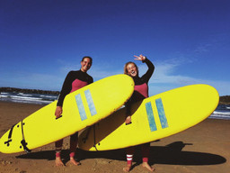 Na school heb ik elke doordeweekse dag van 3 tot 4 uur surfles. De surflessen zijn super leuk! Je wordt ingedeeld in een groepje van jouw niveau (in mijn geval in het beginnersgroepje) en dan ga je een uur zoveel mogelijk surfen. De eerste dagen krijg je nog veel uitleg en verder in de week pak je zoveel mogelijk golven en krijg je tussendoor tips. Het ligt natuurlijk wel een beetje aan de golven hoe leuk de dag is. Wanneer er hoge golven zijn is het voor een beginner niet echt mogelijk om vaak op de plank te kunnen staan, maar dan kun je wel veel andere dingen leren, zoals hoe je met de golven om moet gaan wanneer ze zo hoog zijn. Wanneer de golven prima zijn kun je zo vaak mogelijk op de plank gaan staan, dat ligt er een beetje aan hoe snel je het onder de knie hebt.