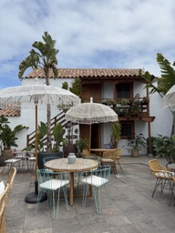 Het hotel is gevestigd in een gerestaureerd herenhuis uit 1902, gelegen in het dorp Moya. Het pand behoorde tot de familie Barbosa, een lokale apothekers dynastie. Binnen zijn originele elementen met zorg behouden: houten balkons, vulkanische tegelvloeren, handgeschilderde muren – en zelfs de oude rebotica, de ruimte waar vroeger medicijnen werden bereid, is nu een sfeervolle suite.